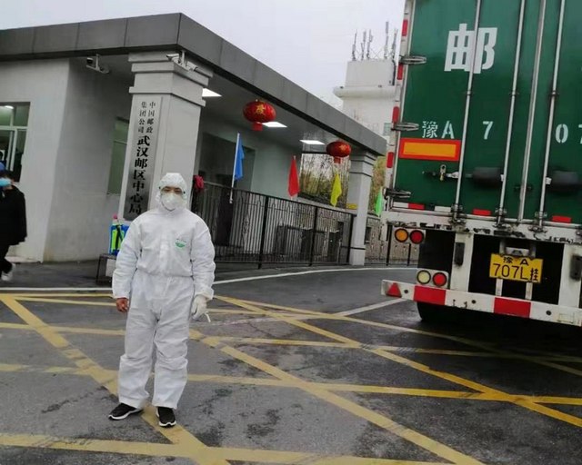 郑州邮区中心局邮件运输中心驾驶员将物资送到武汉邮区 郑州邮区中心局邮件运输中心供图