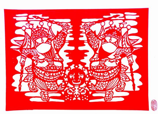 作品《守好门 战病毒》:门神先戴口罩保护好自己,守好自己的岗位