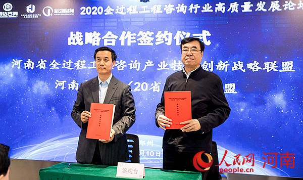现场,河南省全过程工程咨询产业技术创新战略联盟和河南省九商(20省商会)联盟签订战略合作协议,双方将充分发挥各自优势,为推动行业高质量发展作出更大的贡献。