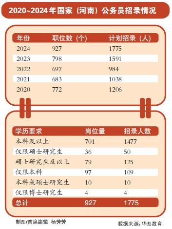 2024年国考河南地区招录职位数共927个,招录人数为1775人。刘汉卿称,相较2023年798个职位,招录1591人来说,此次招录人数和职位数均有不同程度增加,无外乎是河南考生考编的利好时期。