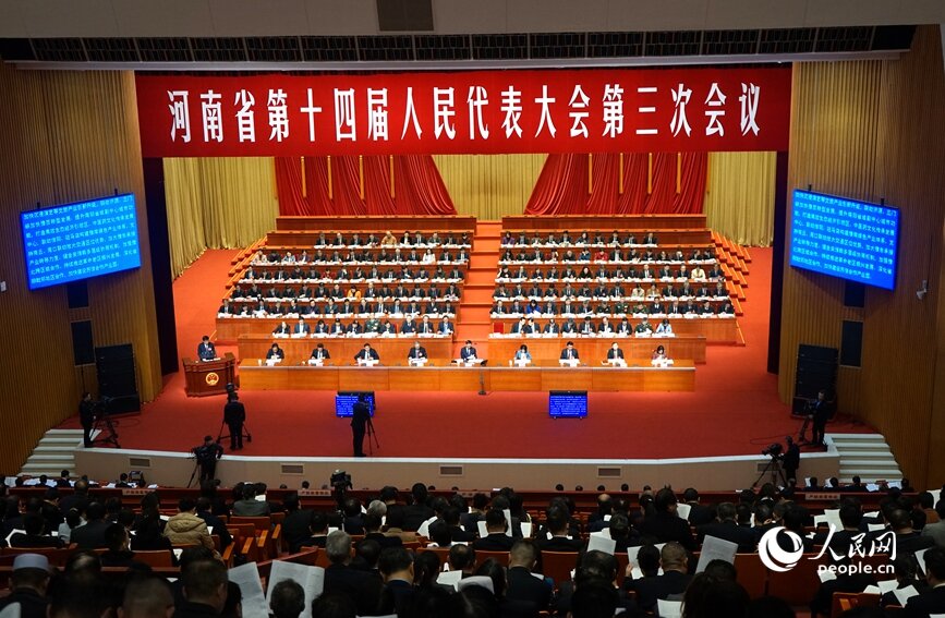 河南省十四届人大三次会议开幕会现场。人民网记者 肖懿木摄