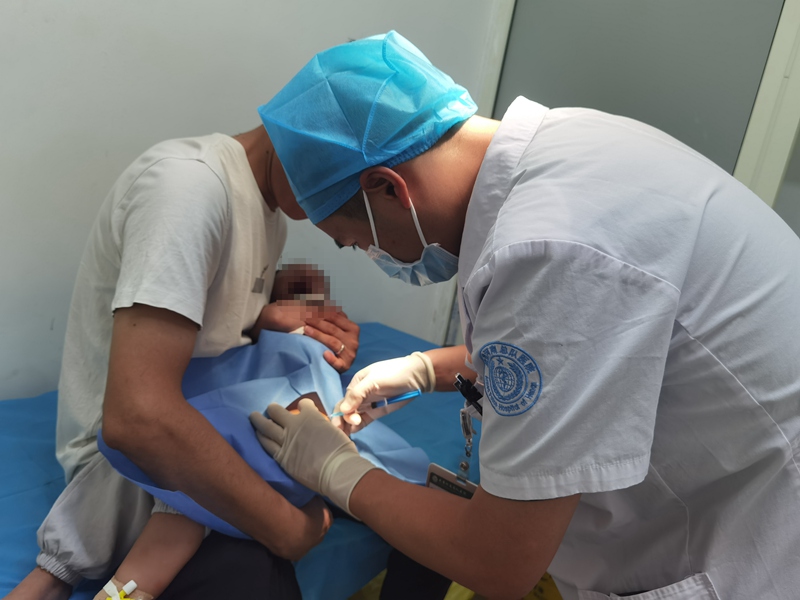 由于事发夜晚,家属并未看清毒蛇种类,幼儿又无法准确表达,转院耽误一定时间,经皮试患儿又对抗毒蛇血清过敏,给救治增加了种种难度,主治医师张国轩、医生梁家强迅速对伤口进行减压处理,外敷蛇药片,并输注液体治疗,经过数小时的密切监护和对症治疗,患儿的生命体征逐渐平稳,肿胀开始消退,逐渐恢复活力。