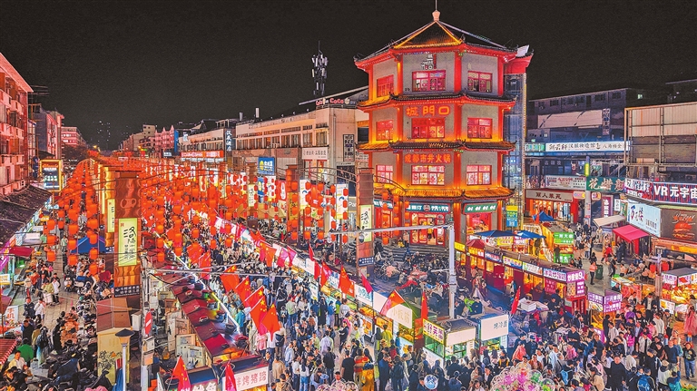 10月2日夜晚,洛阳老城历史文化街区游人如织,游客们赏洛阳美景、品洛阳美食,乐享假日美好时光。 李卫超 石智卫 摄