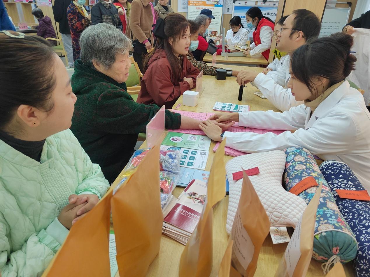 湖东街道报晓新村社区则聚焦老年群体的健康需求,10月23日上午,联合信阳市妇幼保健院在社区美好邻里中心开展“情暖重阳,健康同行”主题义诊活动。现场秩序井然却不失热闹,血糖检测、血压测量、耳鼻喉科检查、牙科诊疗、中医科诊疗等项目同步推进,全方位满足居民健康需求。血糖、血压检测区,医护人员一丝不苟地记录每一项数据,遇到检测异常的居民,当场给出专业的饮食和生活建议,还反复叮嘱要多关注自身健康;耳鼻喉科医生手持先进仪器,细致为居民排查健康隐患;中医科医师则通过把脉、看舌苔等传统方式为居民辨识体质,提供个性化养生方案,还现场演示穴位按摩技巧,让居民亲身感受中医的独特魅力。健康知识宣传区里,医护人员与社区志愿者忙着发放宣传资料,通俗讲解健康知识,引导居民树立正确健康观念,提升自我保健能力。据统计,此次活动服务社区居民110 余人次,发放健康资料100 余份,真正让居民在家门口享受到了专业医疗服务。