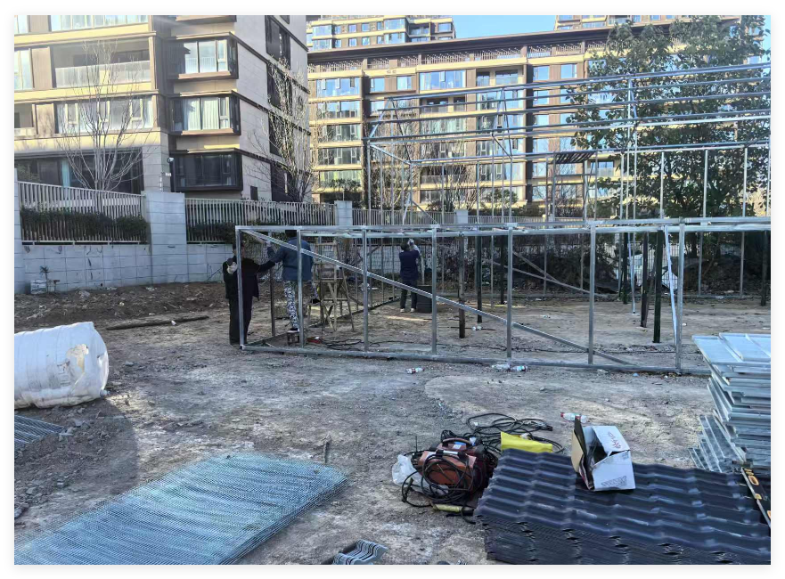 事情要从头说起。前几日,家住郑州市二七区华侨城的冯女士无意间发现窗外楼下“冒”出一个施工现场,工人正忙着搭建铁架子。
