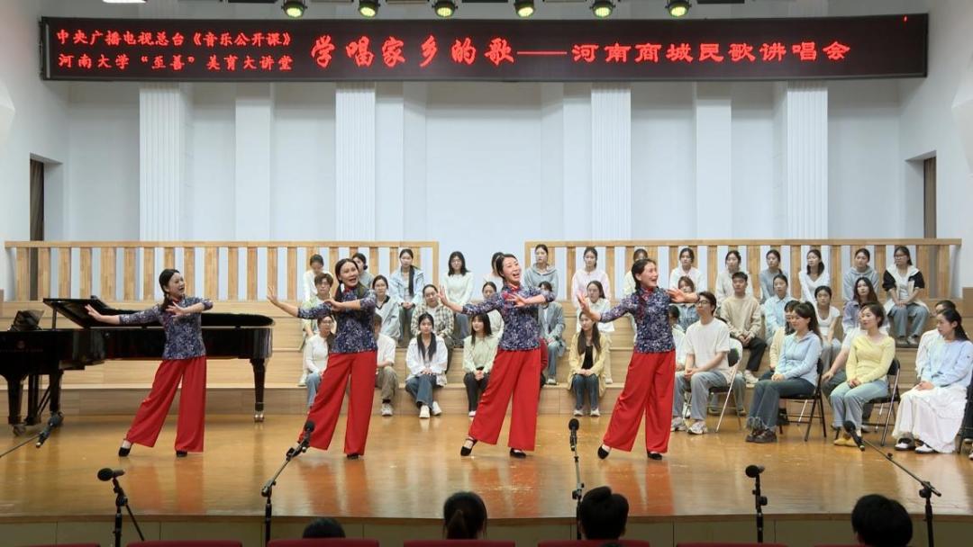 创新赋予民歌更强感染力,广泛传播则让这份魅力抵达更远方。商城县构建起线上线下立体化传播体系:线上搭建“云端民歌库”,出版发行音像制品,让乡音突破地域限制;线下持续推动民歌“走出去”,登上更高规格舞台。2025年3月,李明凤受中央电视台音乐频道《民歌・中国》栏目邀请赴京,演唱录制商城民歌《车水薅秧》,让商城民歌自2010年后再度唱响国家级平台。同年4月,“学唱家乡的歌——商城民歌讲唱会”走进河南大学、郑州轻工业大学,现场展演展示商城民歌16首,学生们现场学唱经典民歌《对花》,活动通过中央广播电视总台音乐公开课栏目向全国直播,在年轻学子心中播下传承的种子……