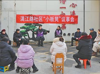河南省漯河市召陵区天桥街街道漓江路社区举办“小板凳”议事会。苏焕祎摄